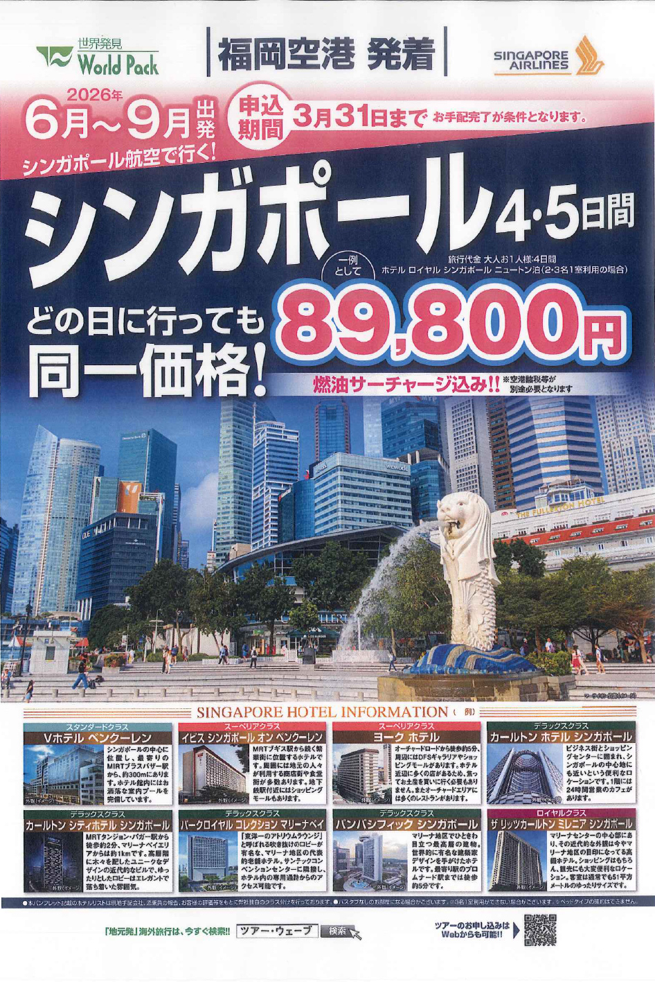 どの日に行っても同一料金! 89,800円